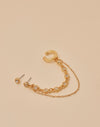 Los aretes Lluvia evocan movimiento y delicadeza. Un diseño tipo climber que conecta un topo con un earcuff a través de una cadena de cristales, creando un efecto sutil y elegante que ilumina el rostro.