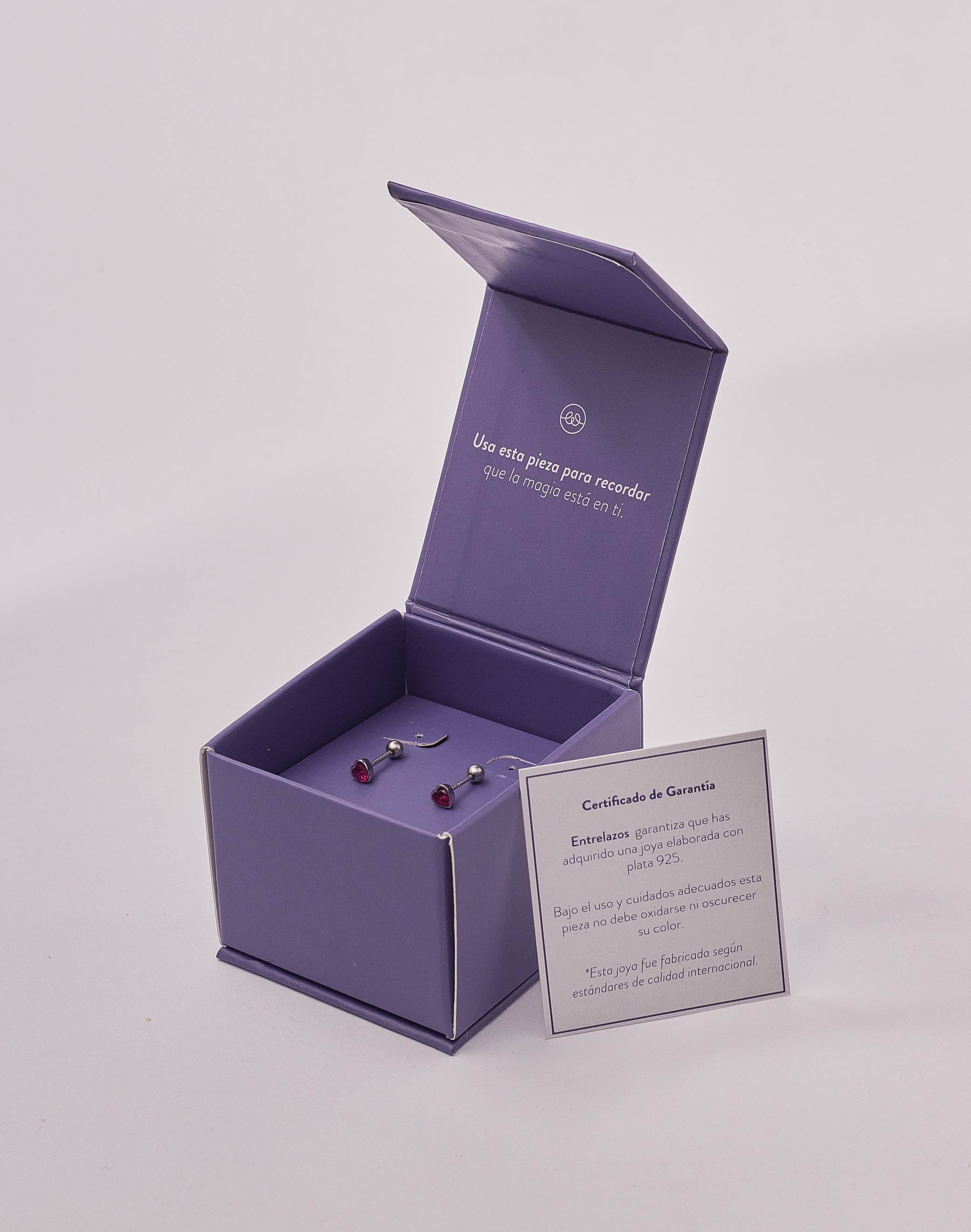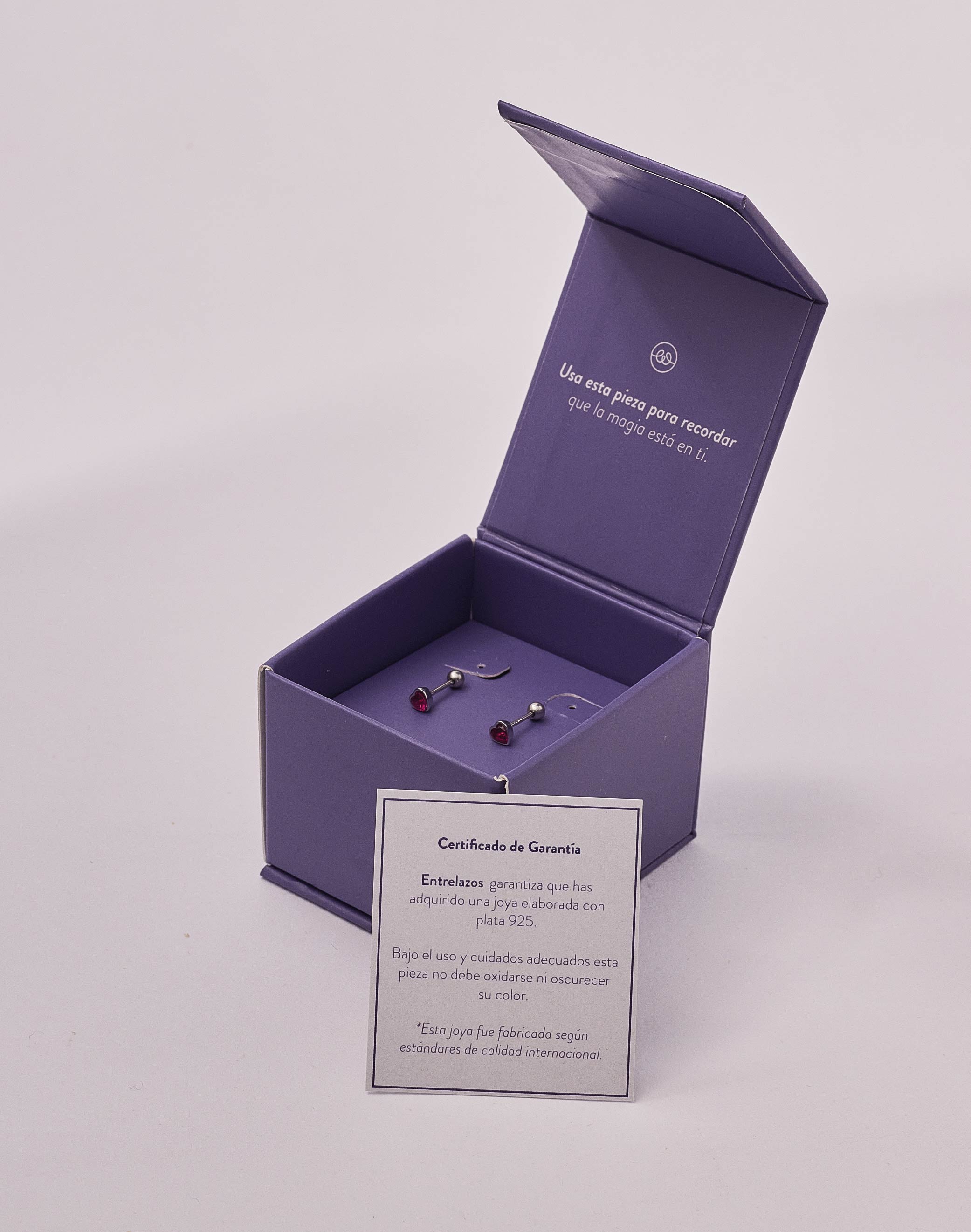 Estos aretes en plata ley 925 son una elegante adición a cualquier atuendo. Con su forma de corazón y zircón color fucsia , emanan un estilo sofisticado y único. Hechos...