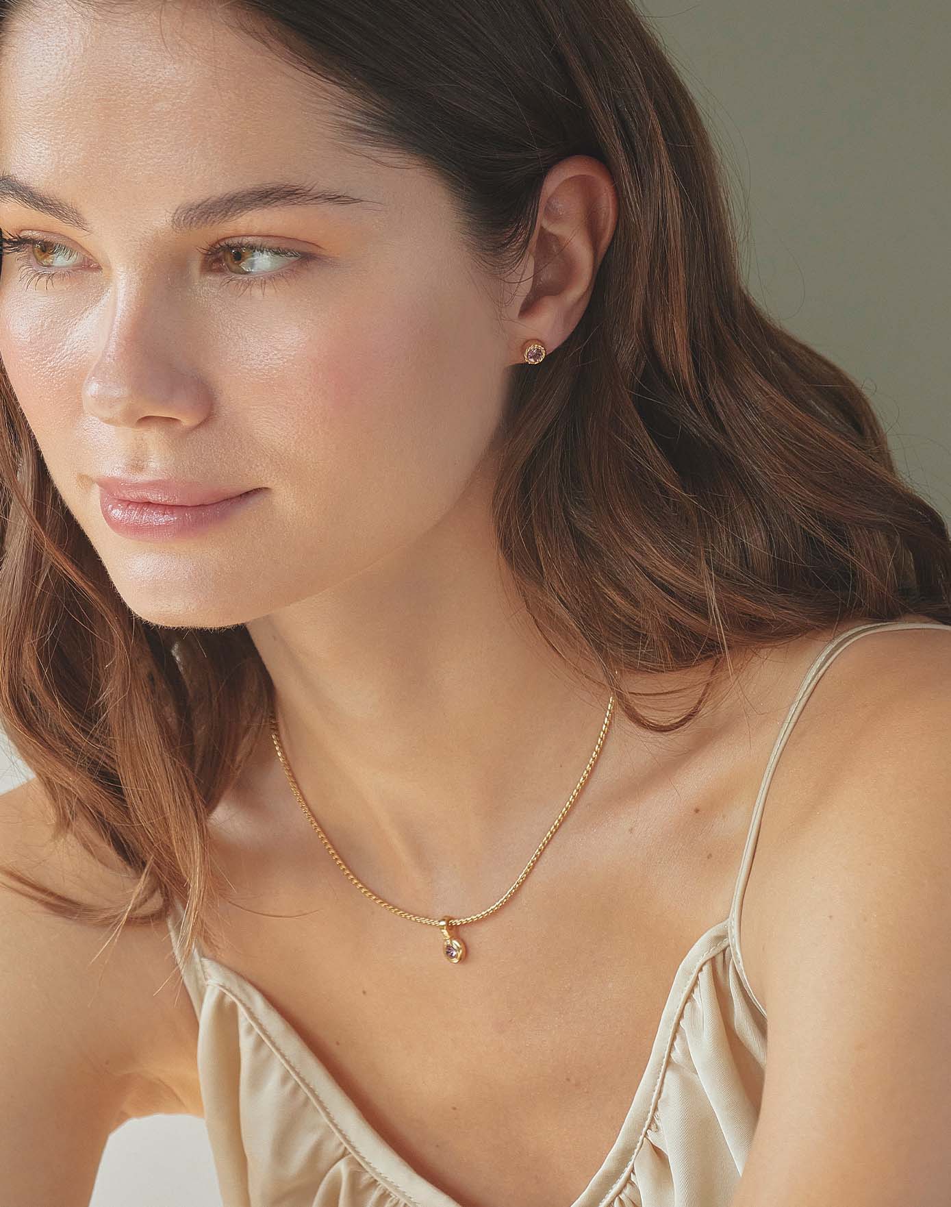 El collar Calma es un recordatorio de pausas conscientes. Su cristal lila representa tranquilidad, intuición y equilibrio emocional, perfecto para acompañar momentos de introspección. Especificaciones: Baño en Oro 24k Cristal...