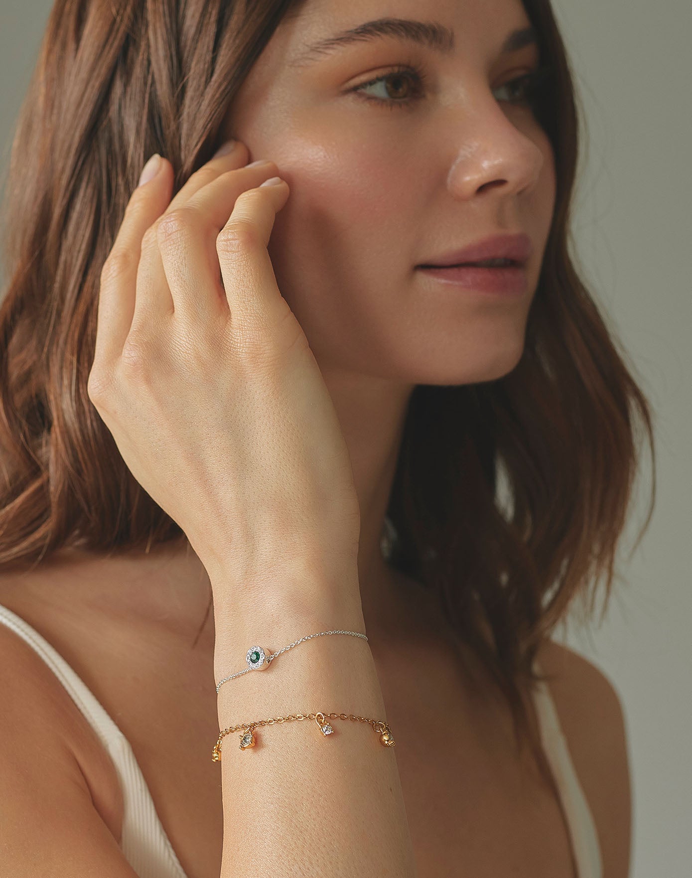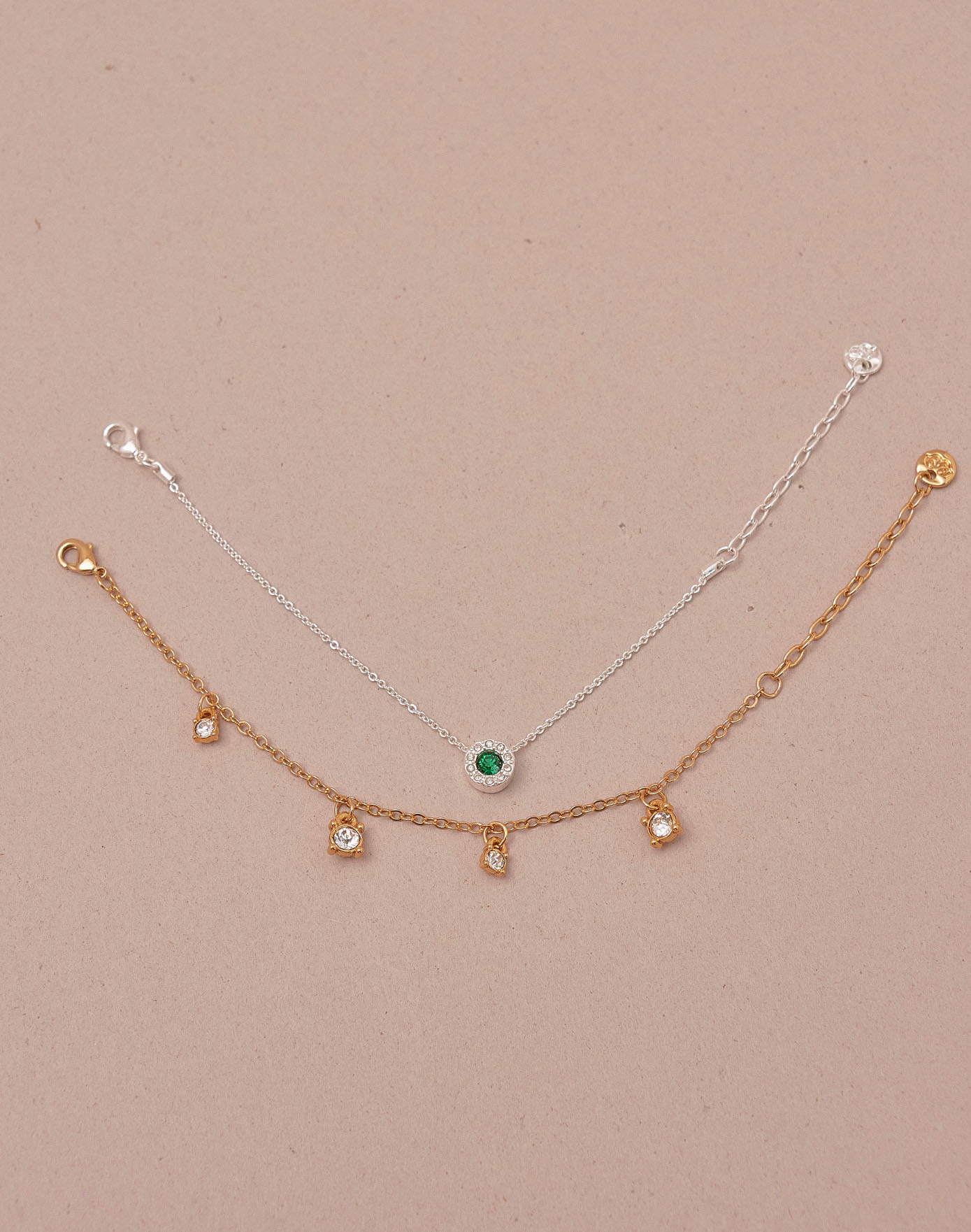 El set Emerald combina la luminosidad de los cristales clear con la profundidad del cristal verde emerald. Una mezcla elegante entre oro y plata que crea un contraste sofisticado y moderno.