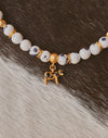 Dale un estilo único a tu look con este set de collar y aretes con print de vaca. El collar, decorado con piedras que resaltan el estampado, incluye un dije central con forma de vaca que roba miradas. Los aretes complementan perfectamente el look. Perfecto para quienes buscan expresar su personalidad con un accesorio original y lleno de vida.